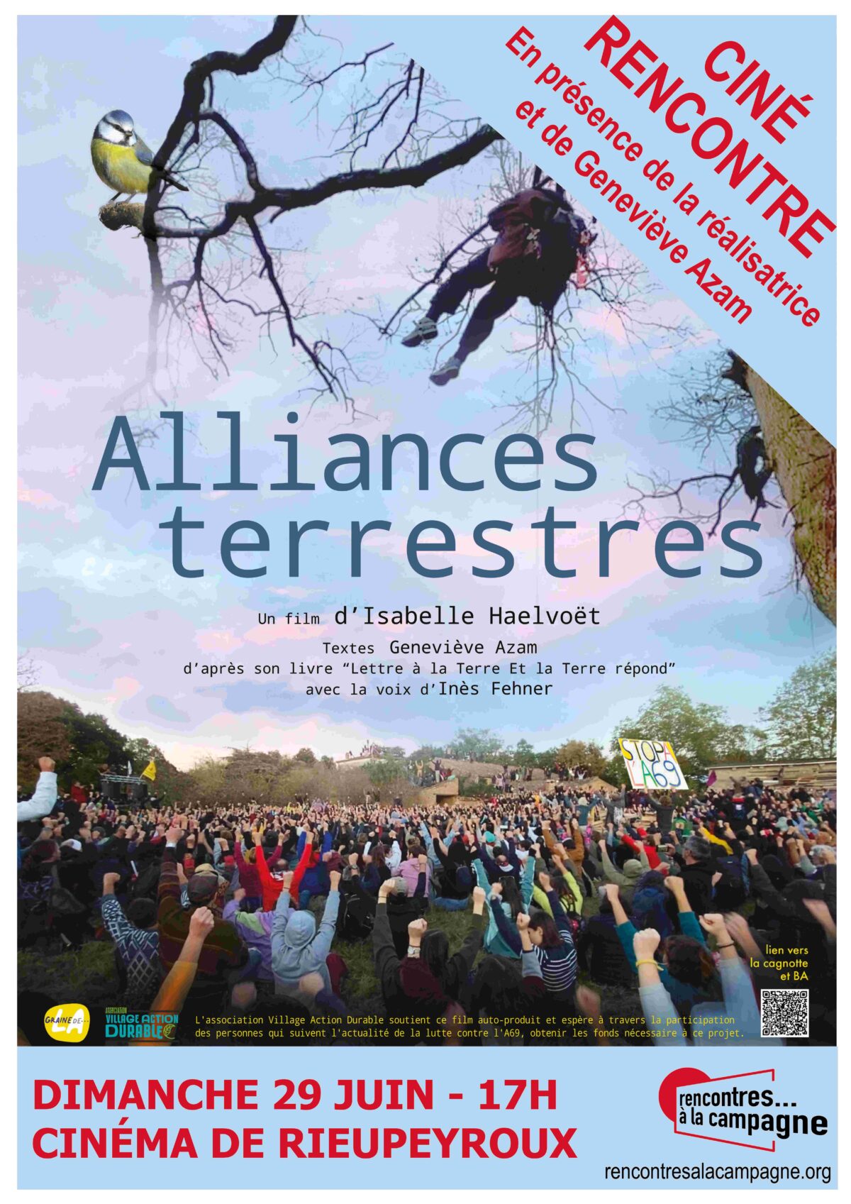 Ce documentaire nous plonge au cœur de la lutte locale contre l’autoroute A69, mais aussi des luttes historiques et contemporaines contre l’oppression du capitalisme. Le documentaire présente également des initiatives alternatives et des solutions concrètes. Une perspective politique émerge : celle de la subsistance, qui place la défense de la vie au centre de son engagement. Cette pensée écoféministe sera omniprésente tout au long du film.