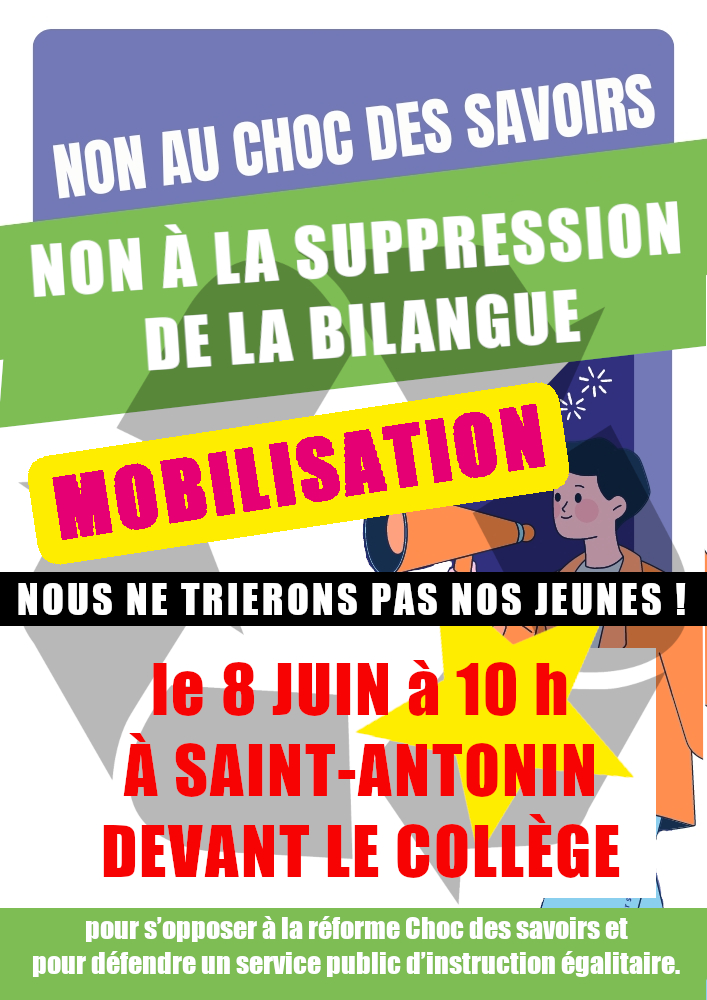 -la suppression de l’option bilangue Anglais/Espagnol à la rentrée 2024/2025 en 6e au collège Pierre Bayrou à Saint-Antonin-Noble-Val 82.