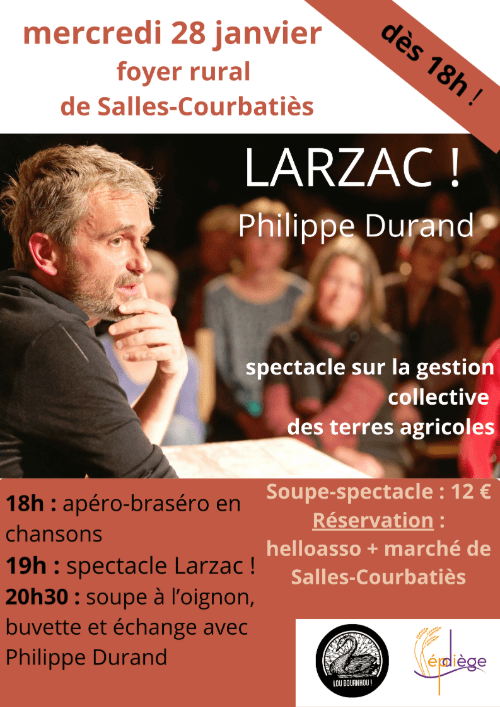 Spectacle Larzac ! de Philippe Durand /18h foyer rural /SALLE COURBATIERS Quand 28 janvier 2026 00h00 Ajouter au Calendrier Télécharger ICS Calendrier Google iCalendar Office 365 Outlook Live